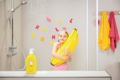 عناية فائقة للاستحمام بجودة عالية وممتعة برائحة الموز الطبيعية للطفل بجودة ثابتة